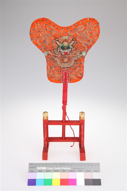 橘緞地蟠龍紋掌扇擺飾組