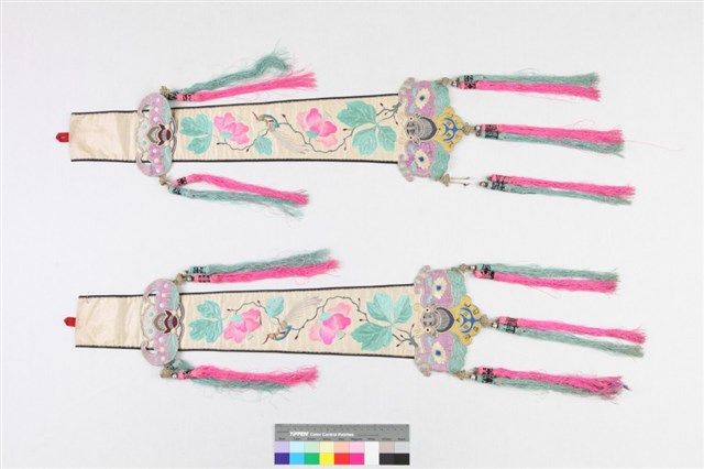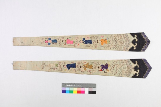 米黃綢地彩繡八仙劍帶