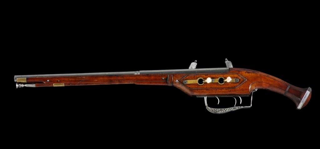 Introduction:The entirely waterproof and concealed lock is the invention of Pierre Bergier, the French clockmaker who turned to gunmaking and supplied several of his works produced around 1635 to the French King Louis XIII. In addition, this pistol has individually fired superimposed loads.