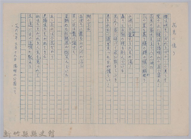 《櫻花詩選》手稿本─〈花見に憶う〉