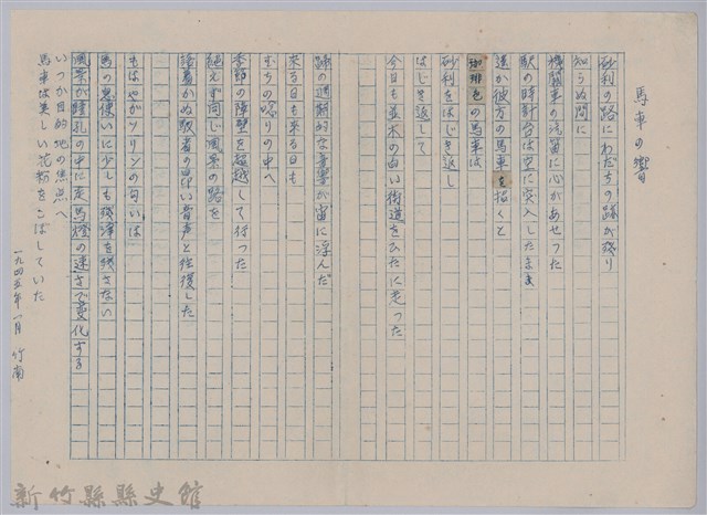 《櫻花詩選》手稿本─〈馬車の響〉