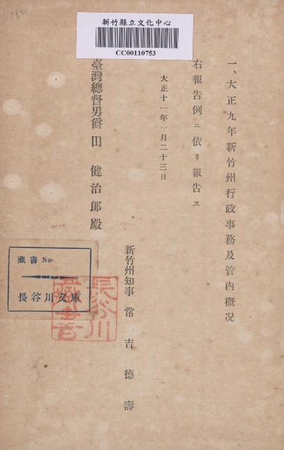 《大正九年度新竹州行政事務及管內概況》