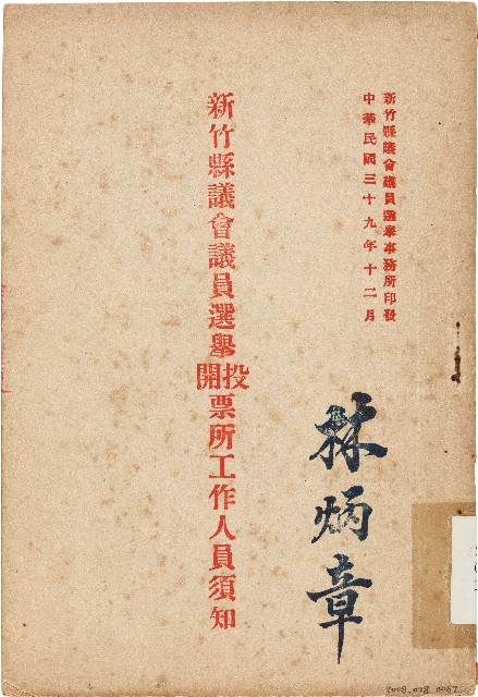 新竹縣議會議員選舉投開票所工作人員須知(中華民國39年12月)