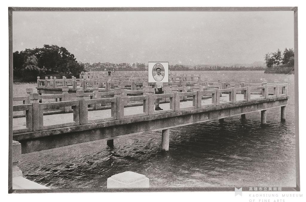 Black and white photograph, image-transferred tile, zinc-plated iron and wood
