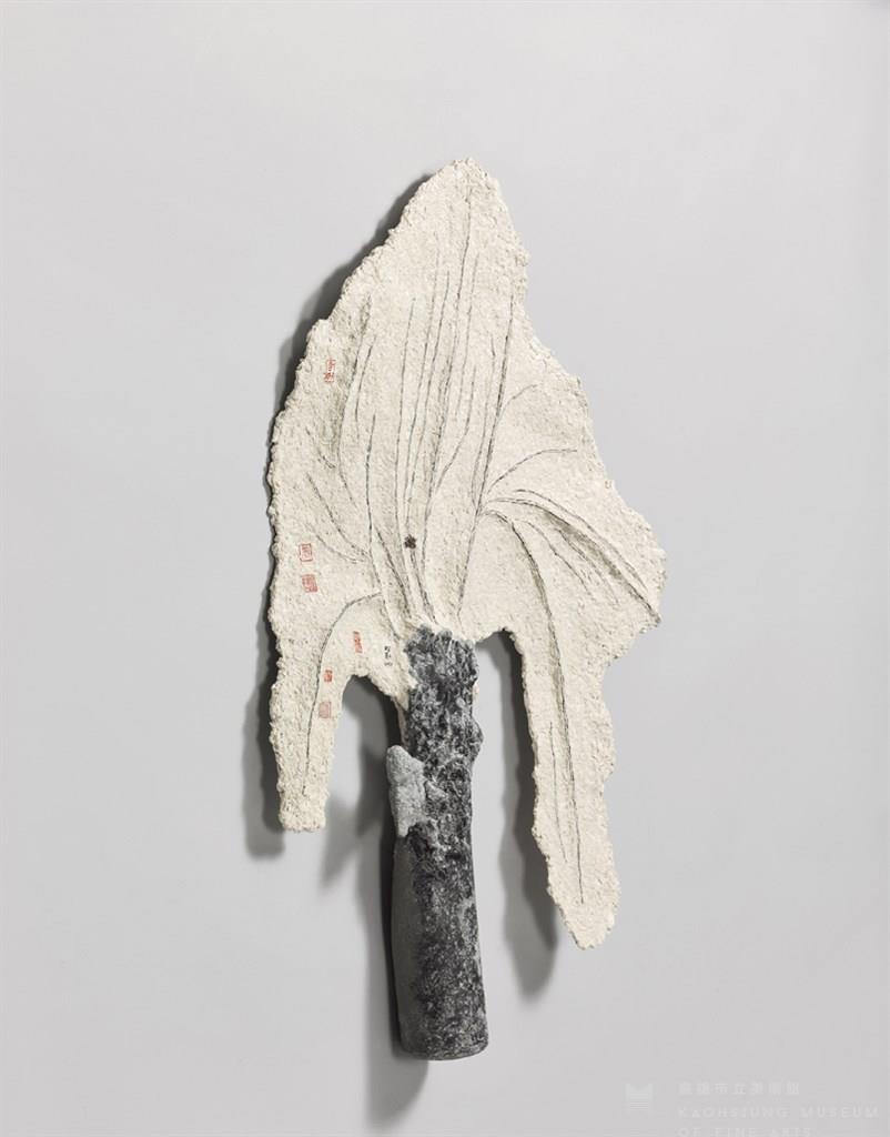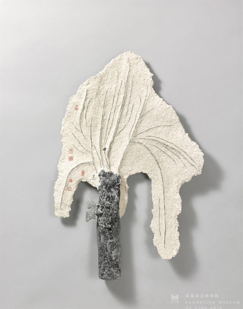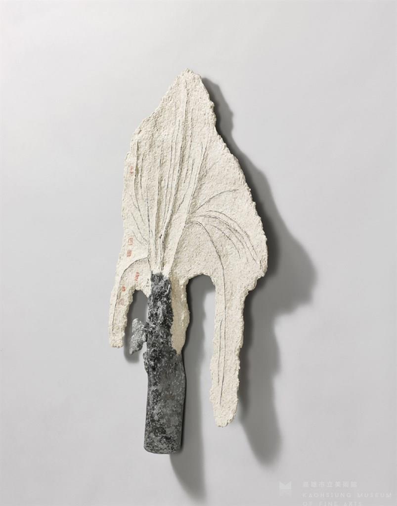Paper pulp, resin, acrylic, cement, stainless steel and remain of artillery shell