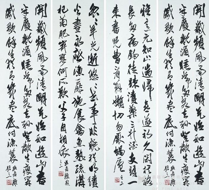 Set of Four Hanging Scrolls in Running Script