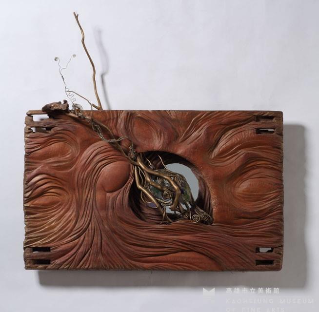 Camphor wood, galvanized iron, aluminum wire and driftwood