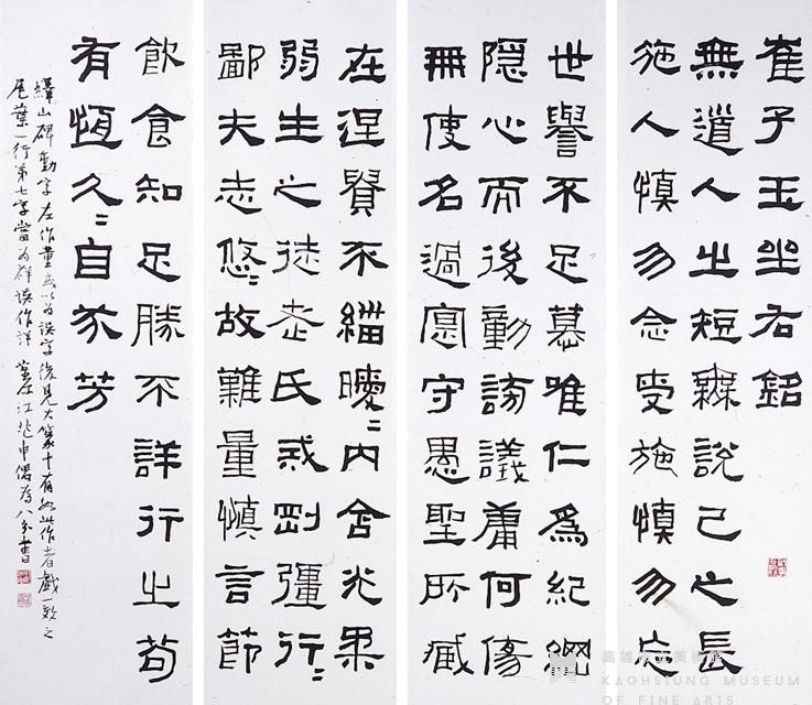 Set of Four Narrow Vertical Scrolls in Official Script