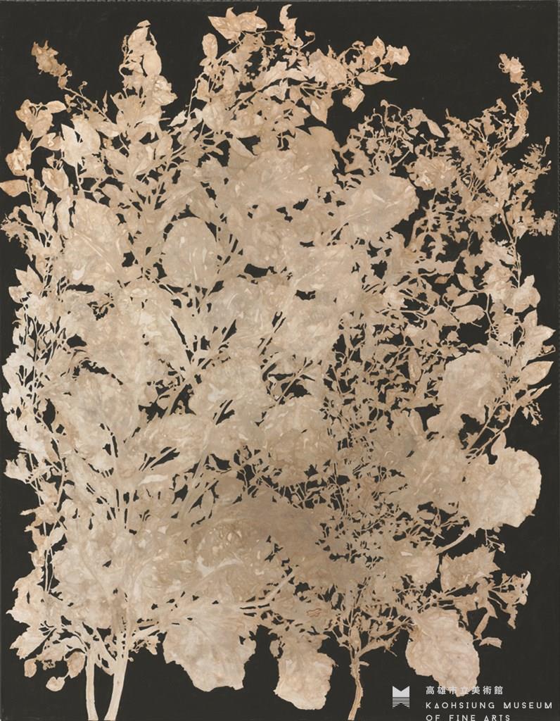Wood ash, carbon black, India ink, talcum powder, chlorophyll and acrylic glue on linen