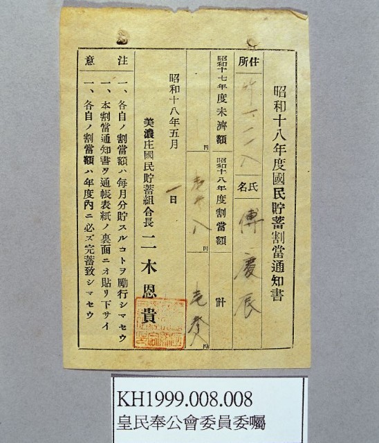 國民貯蓄割當通知書