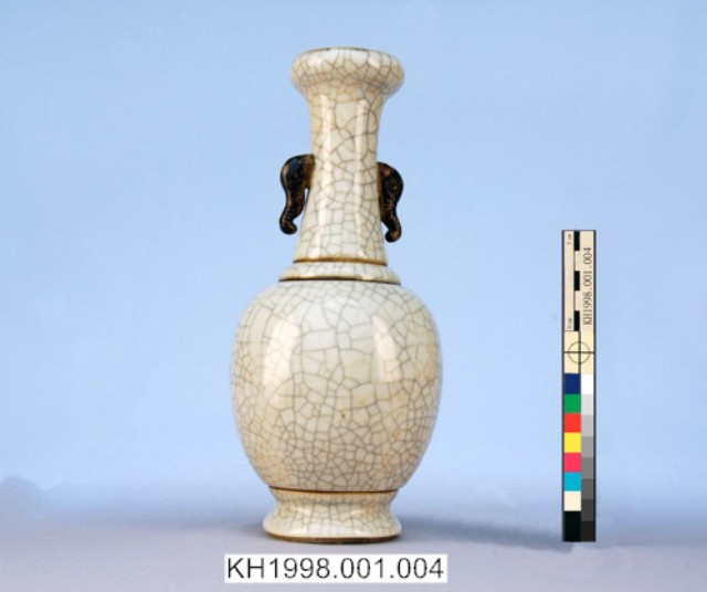 仿哥釉弦紋象耳瓶