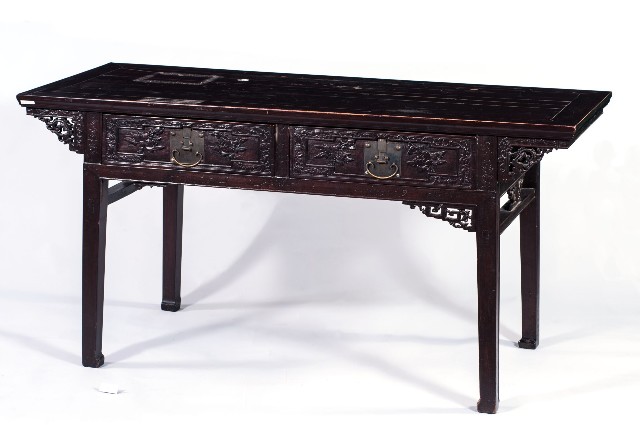 牡丹浮雕馬蹄腳書桌