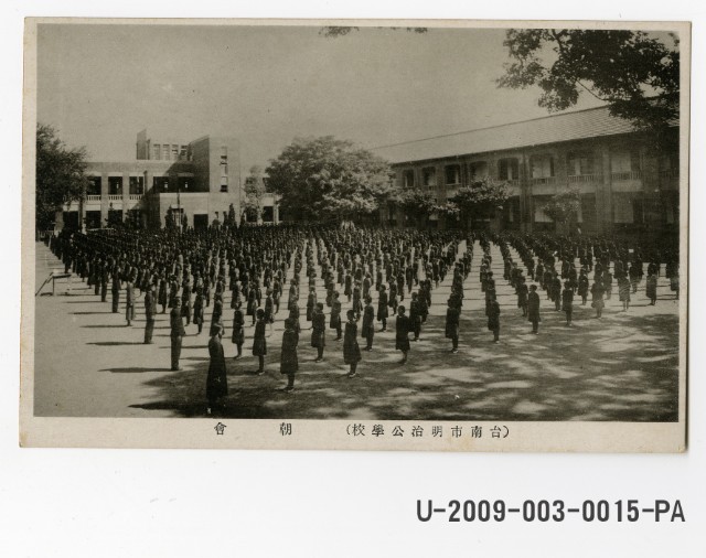 Student's morning assembly of Tainan Meiji Elementary school postcard