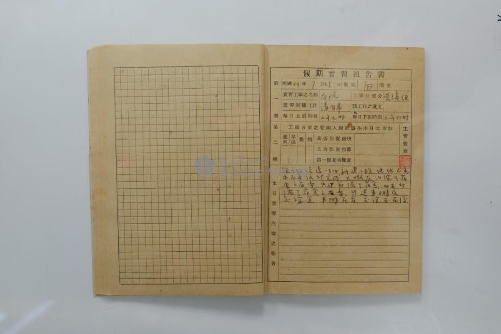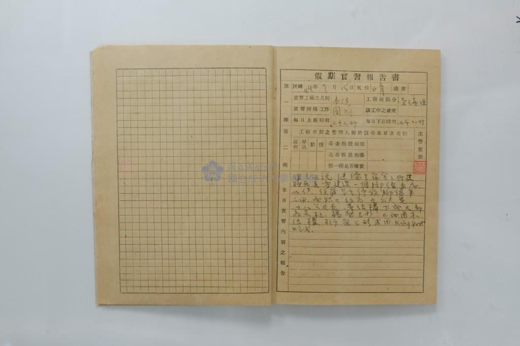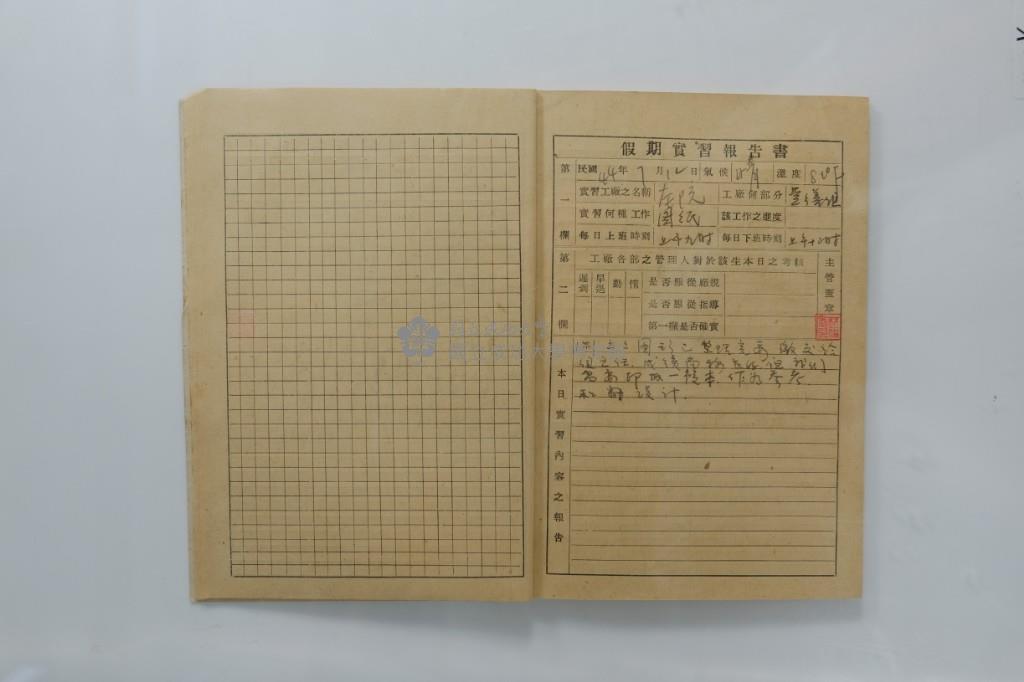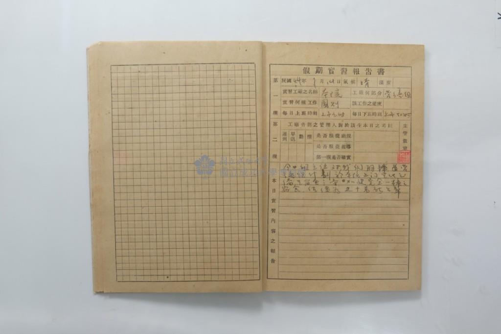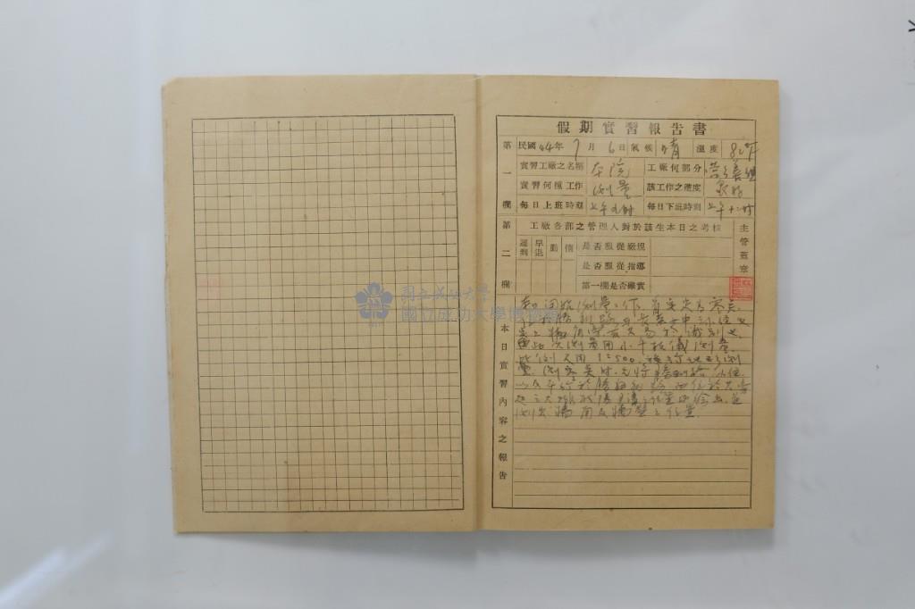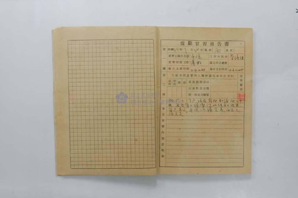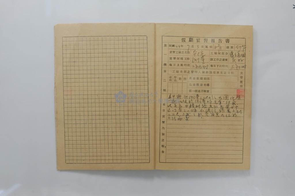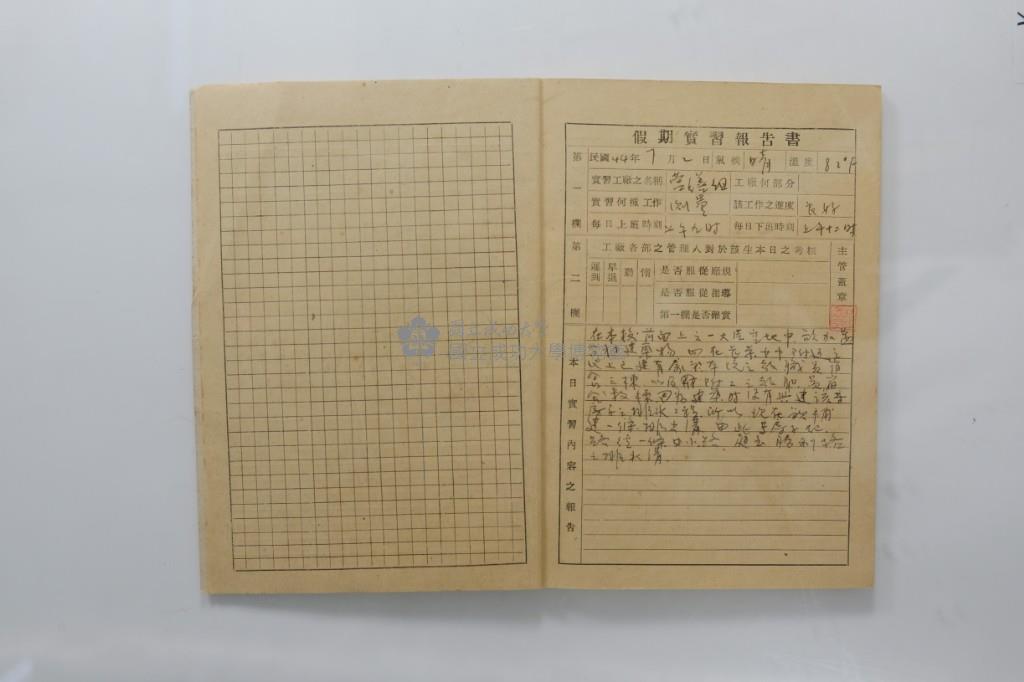 民國44年7月學生假期實習報告書