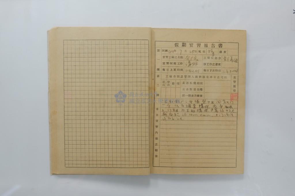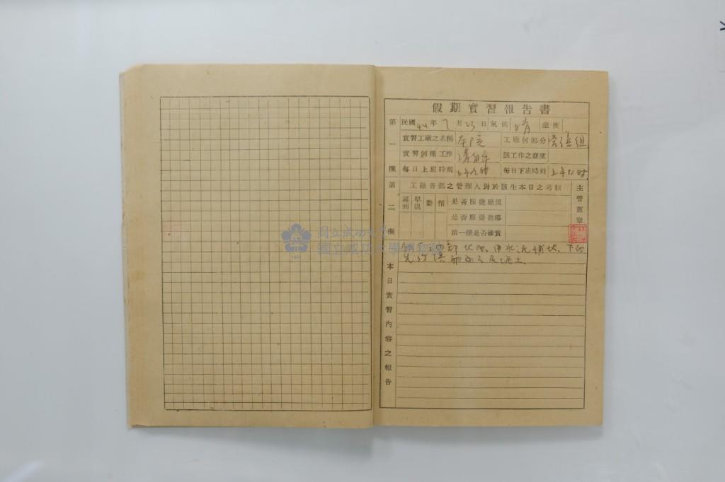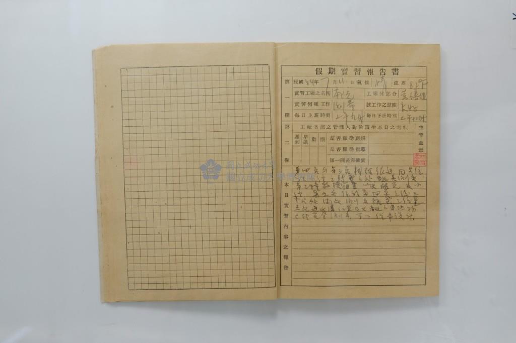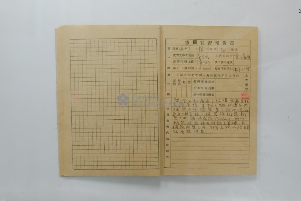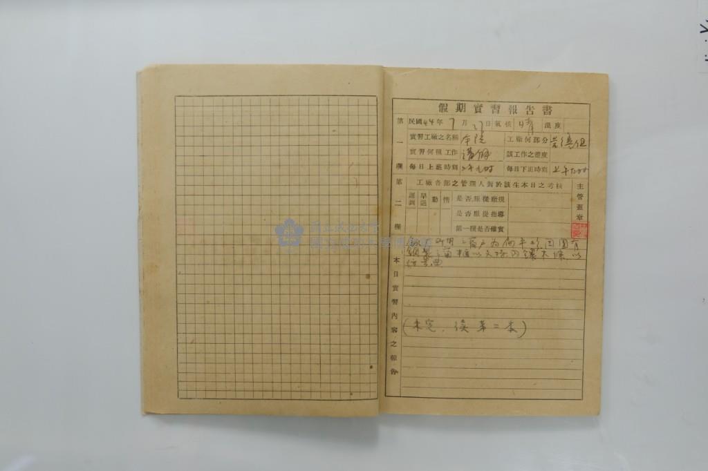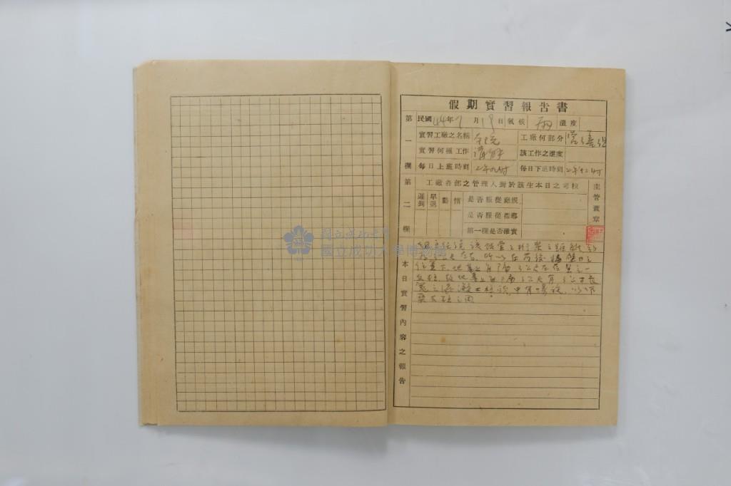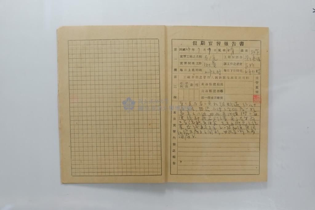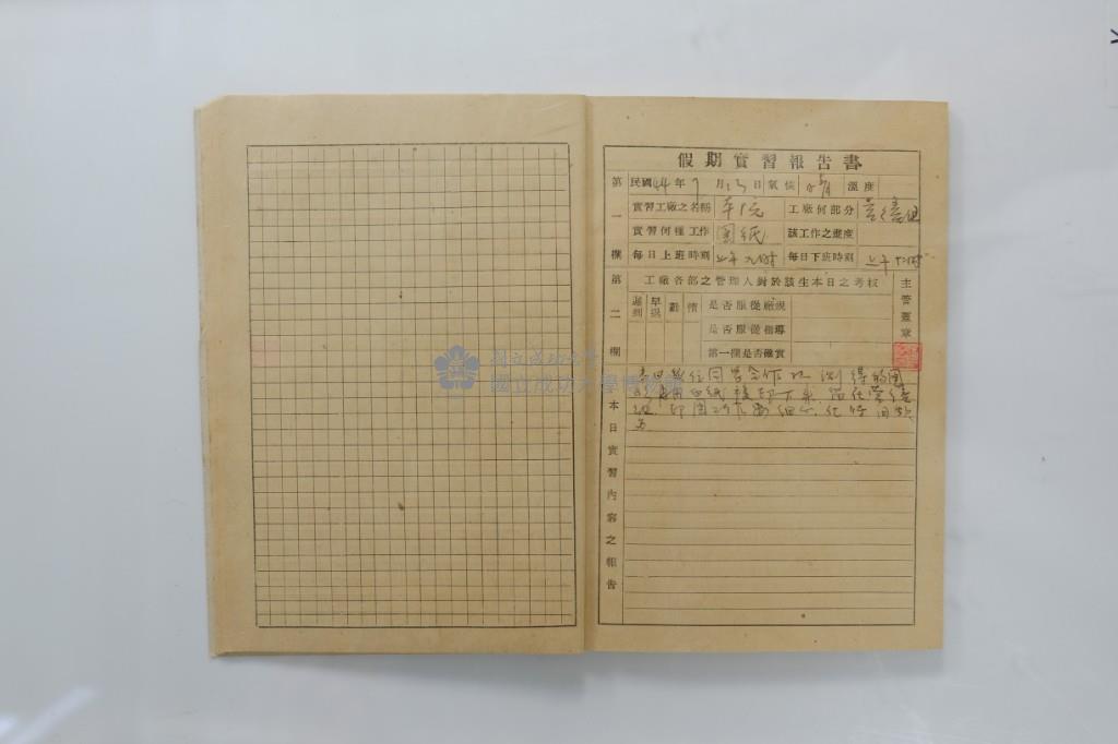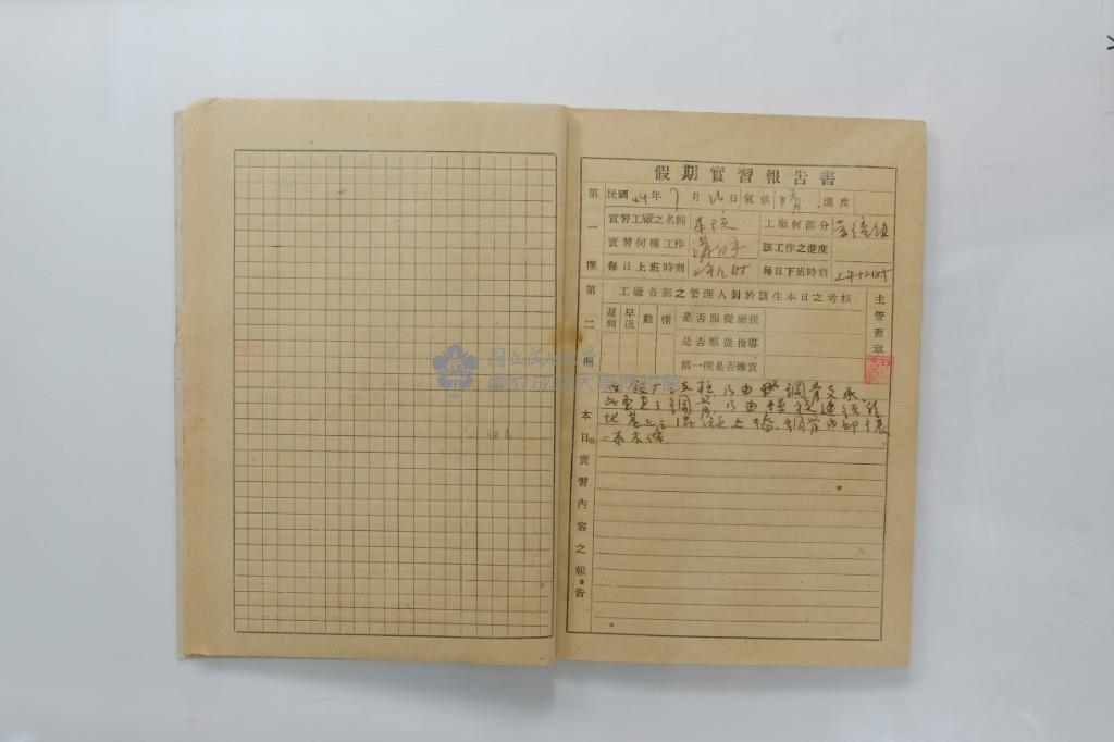 民國44年7月學生假期實習報告書
