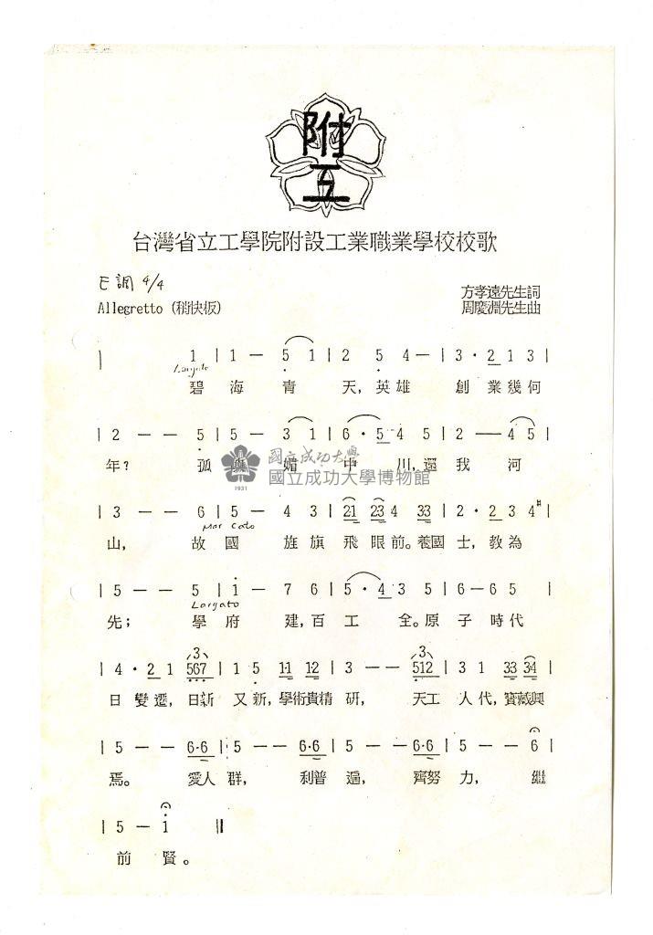 The Affiliated Industrial Vocational High School of Taiwan Provincial Institute of Technology song