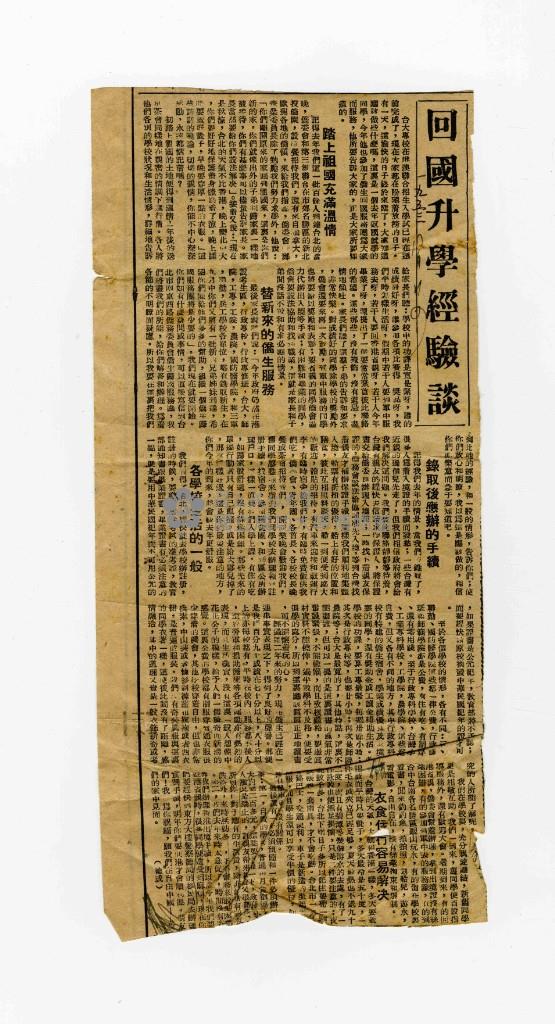 香港時報〈回國升學經驗談〉剪報