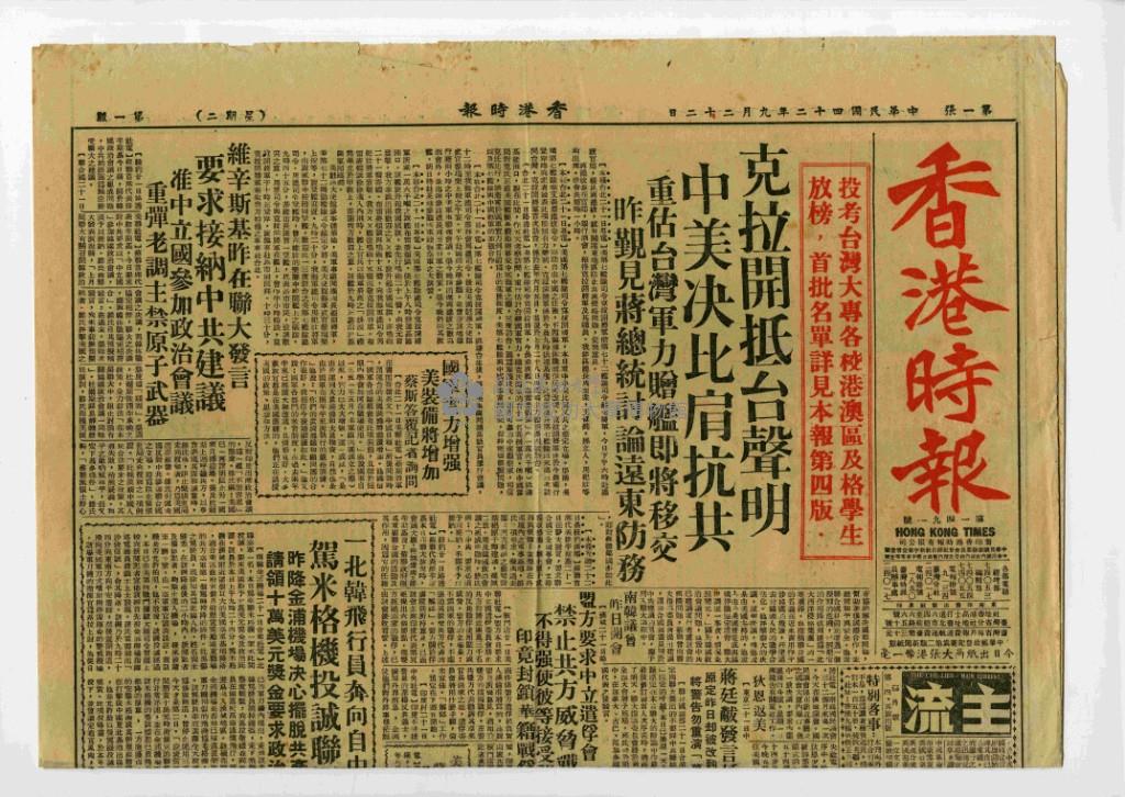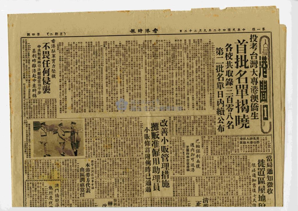 香港時報〈投考台灣大專港澳僑生首批名單揭曉〉簡報