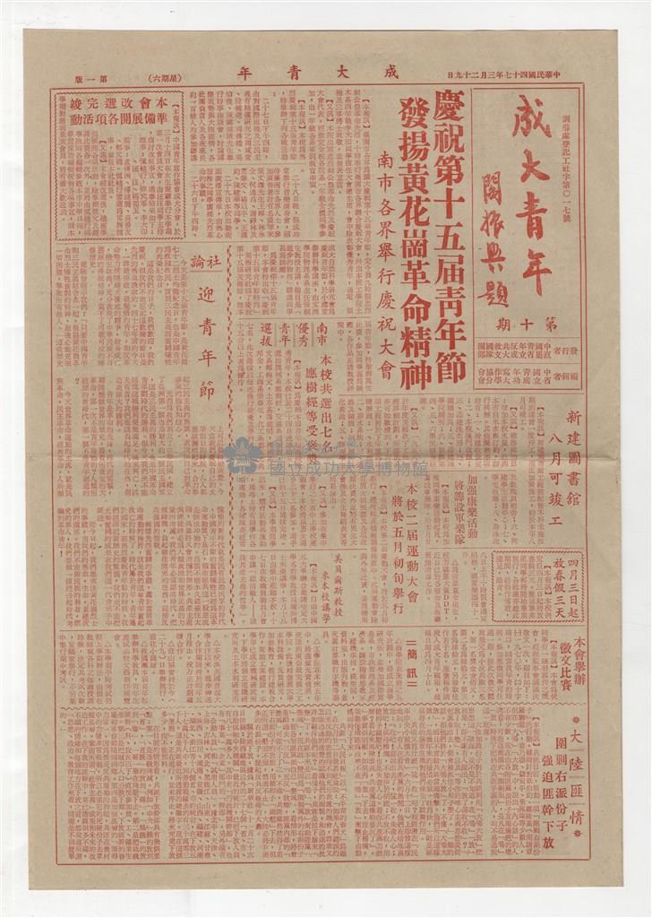 《成大青年 》第十期(1958年出版)