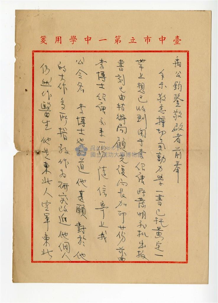 Wong Tsoo's letter from Ying Min