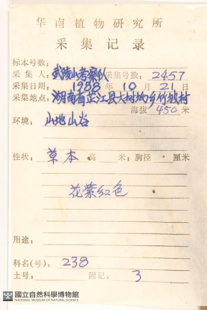 Collector's No.:武02457