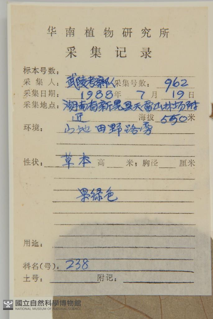 Collector's No.:武00962