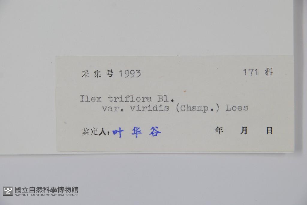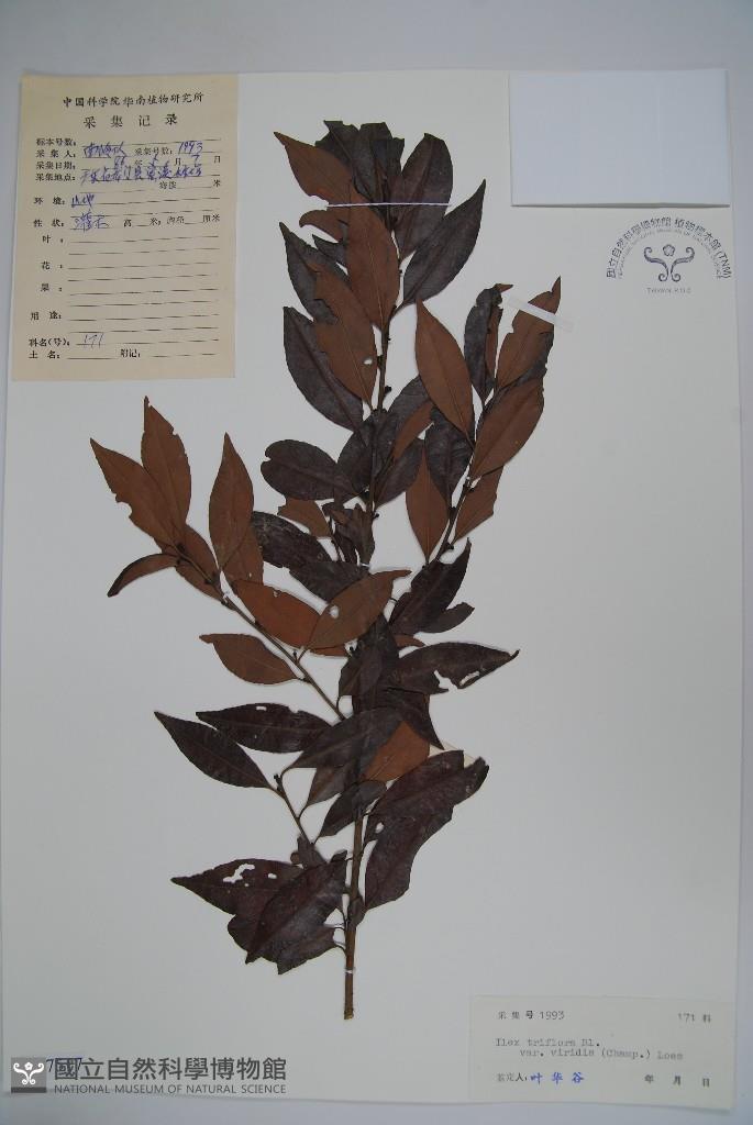 Scientific Name: Ilex triflora Bl. var. viridis (Champ.) Loes.
