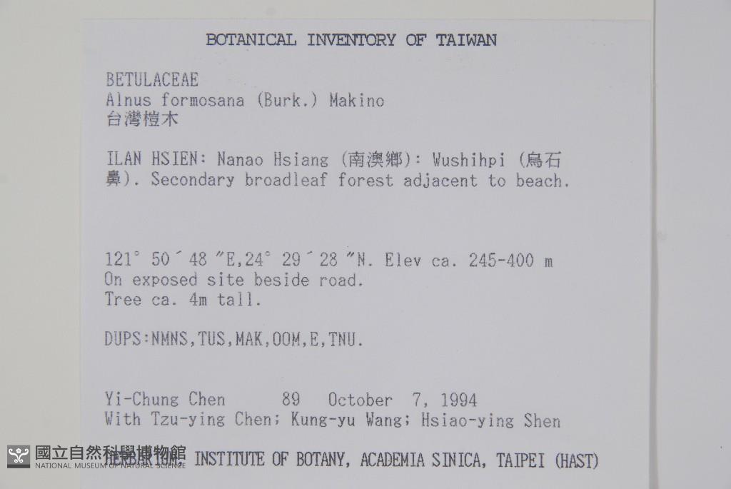 Scientific Name: Alnus formosana (Burkill ex Forbes & Hemsl.) Makino