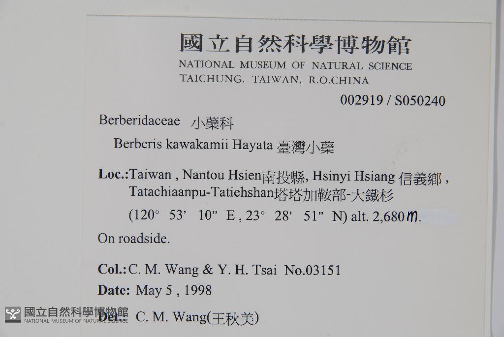 Scientific Name: Berberis kawakamii Hayata