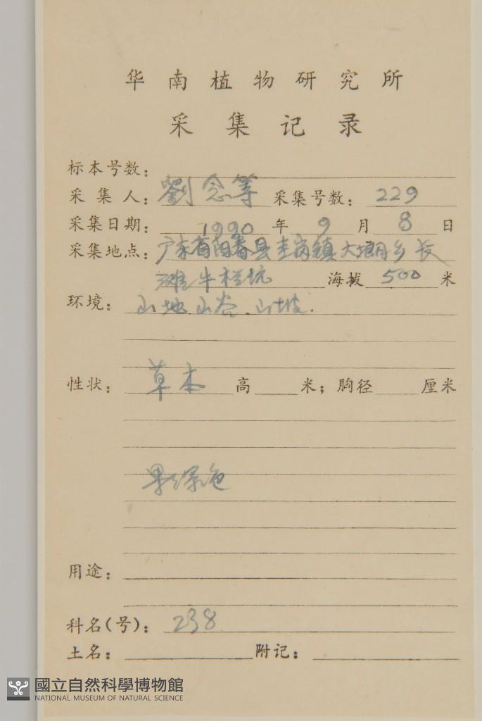 Collector's No.:劉?0229