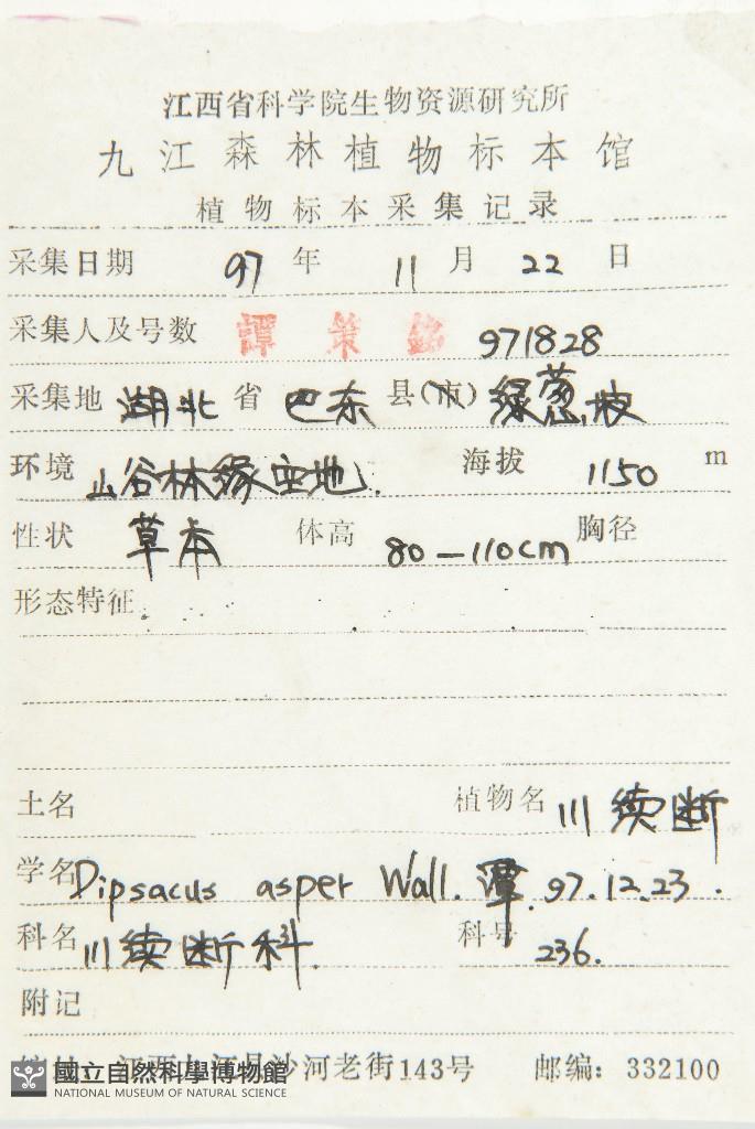 Scientific Name: Dipsacus asper Wall.