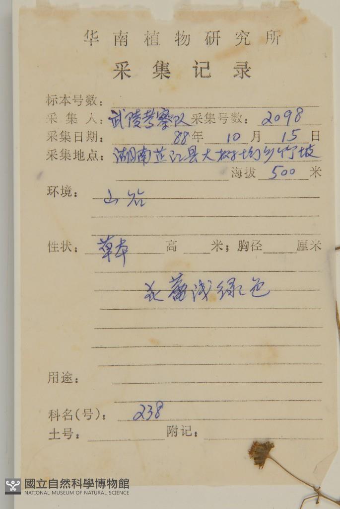 Collector's No.:武02098