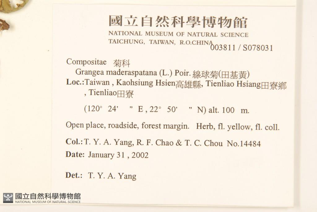 Collector:T. Y. A. Yang, R. F. Chao & T. C. Chou