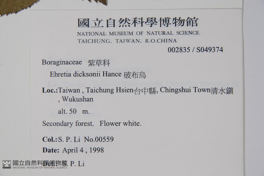 Scientific Name: Ehretia dicksonii Hance