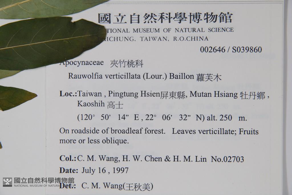 Collector:Chiu-Mei Wang (王秋美), Shyuan-Wu Chen (陳玄武), & Hui-Mei Lin (林慧美)