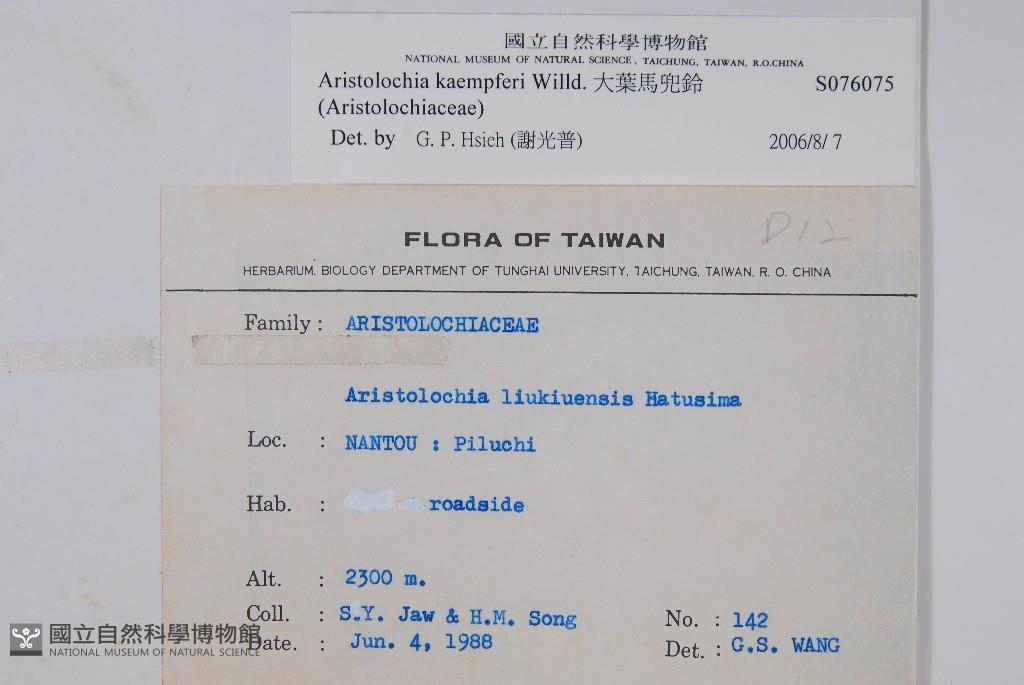 Collector:S. Y. Jaw & H. M. Song