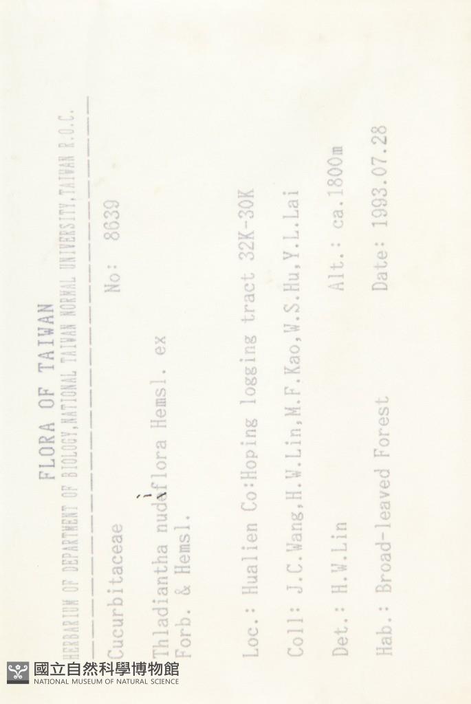 Collector:J. C. Wang, H. W. Lin, M. F. Kao, W. S. Hu & Y. L. Lai