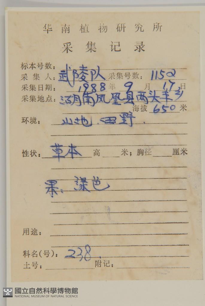 Collector's No.:武01152
