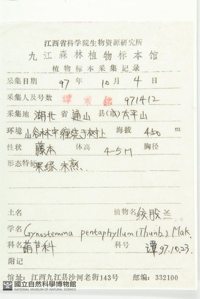 Scientific Name: Gynostemma pentaphyllum (Thunb.) Makino