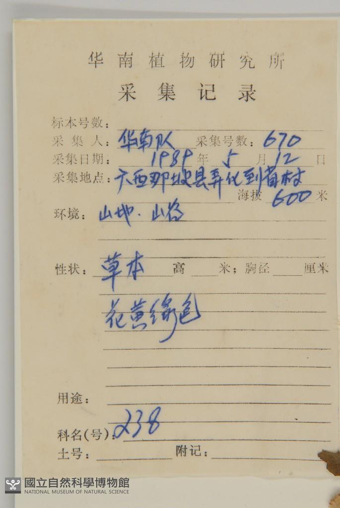 Collector's No.:華00670