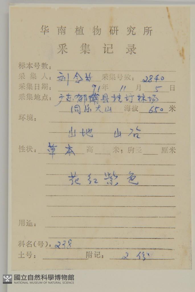 Collector's No.:劉?2840