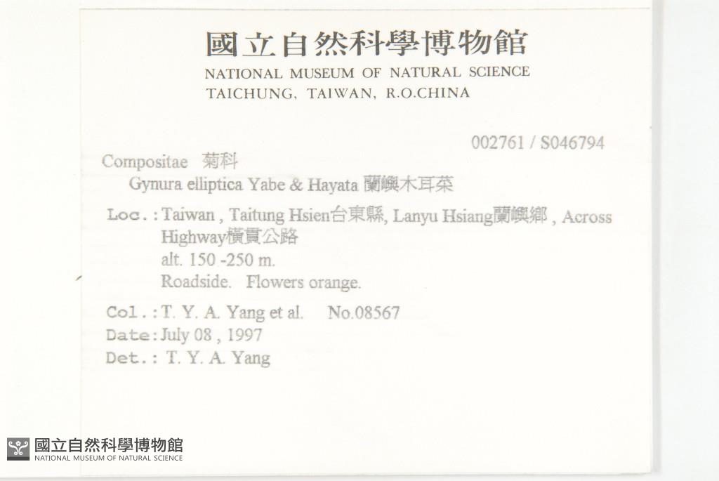 Scientific Name: Gynura elliptica Yabe & Hayata
