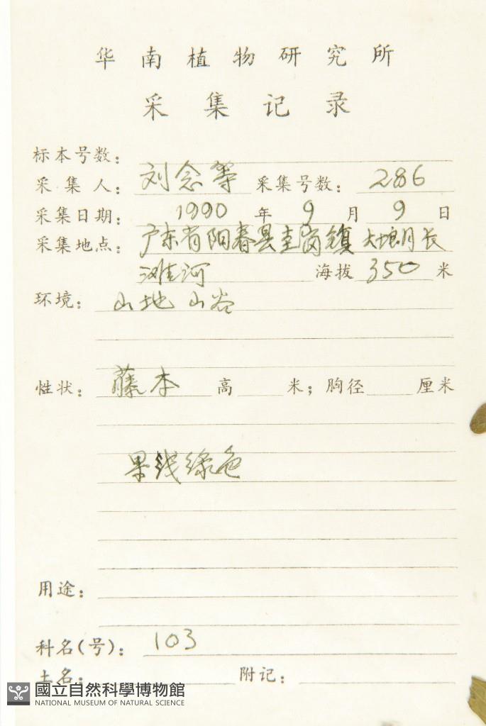 Collector's No.:劉?0286