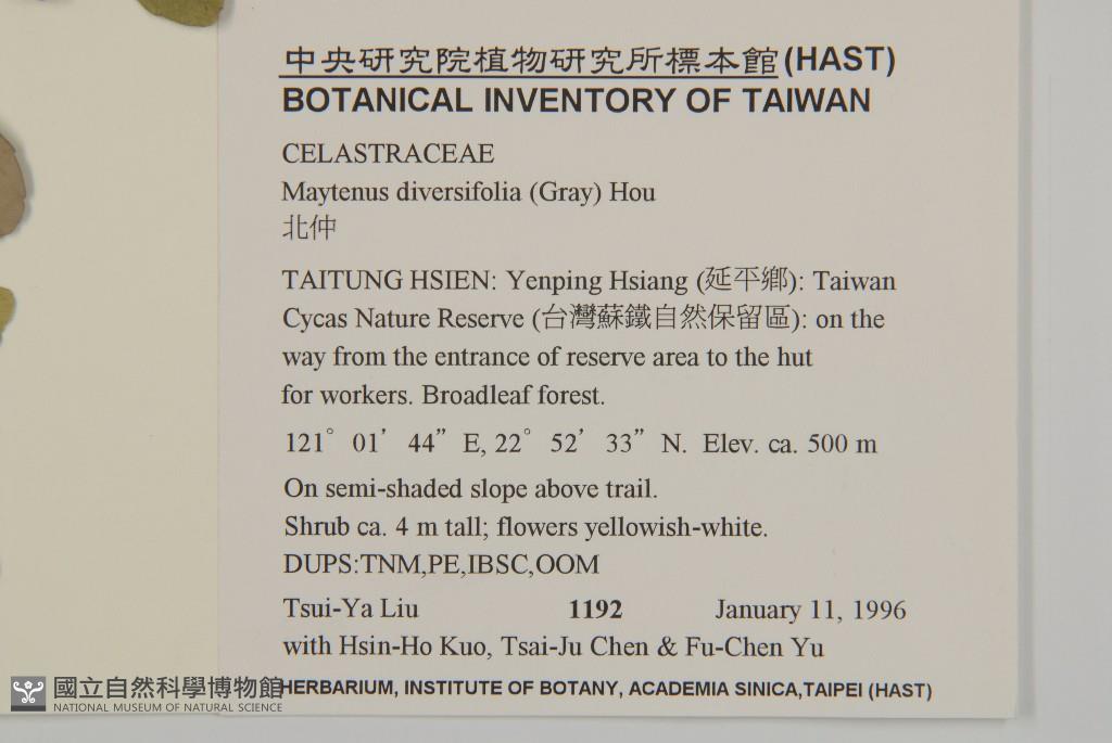 Collector:T. Y. Liu, H. H. Kuo, T. J. Chen & F. C. Yu