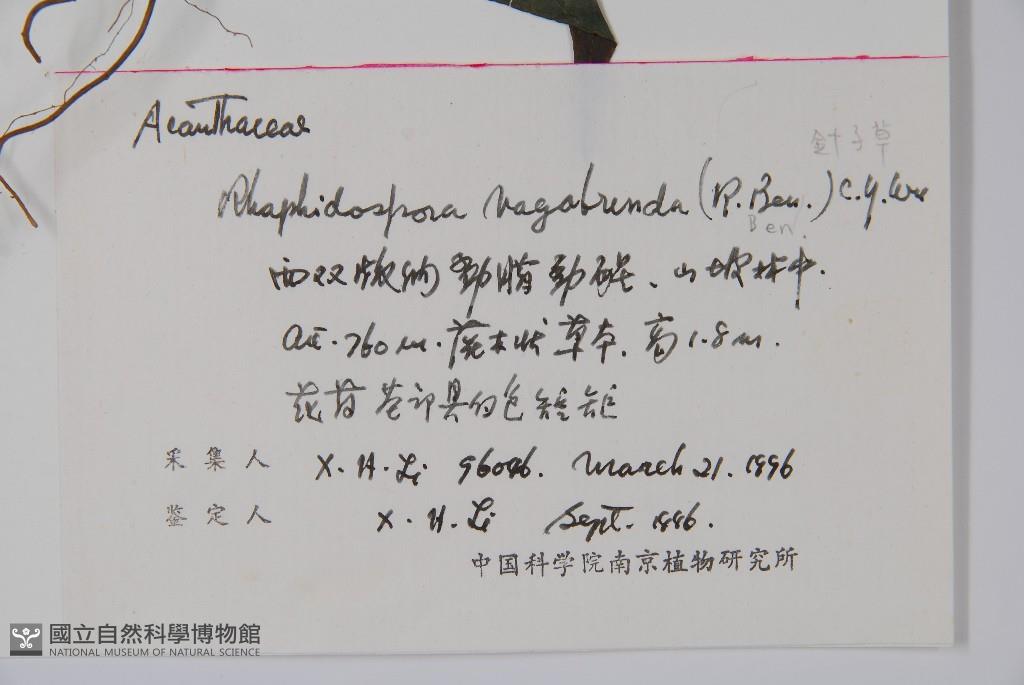 Scientific Name: Rhaphidospora vagabunda (Benoist) C. Y. Wu