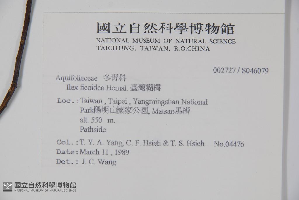 Collector:T. Y. A. Yang, C. F. Hsieh & T. S. Hsieh