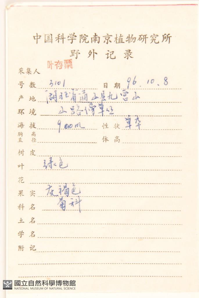 Collector:C. S. Ye(葉存粟)