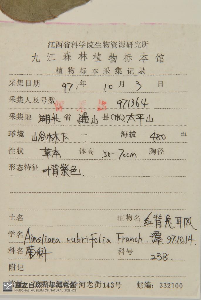Scientific Name: Ainsliaea rubrifolia Franch.