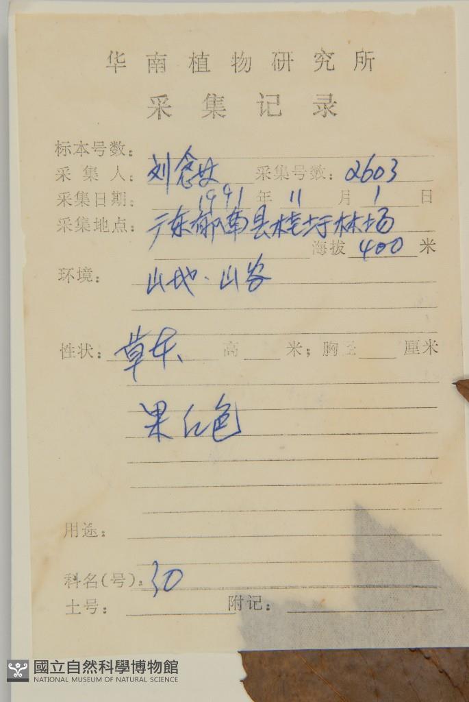 Collector's No.:劉?2603