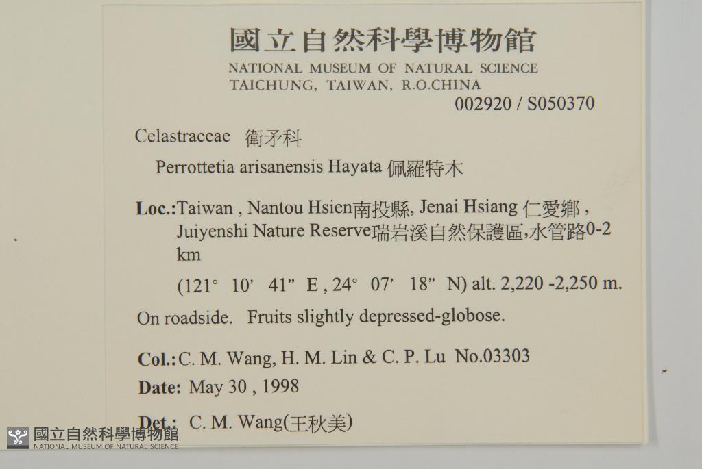 Collector:Chiu-Mei Wang (王秋美), Hui-Mei Lin (林慧美), & Chi-Ping Lu (呂紀萍)